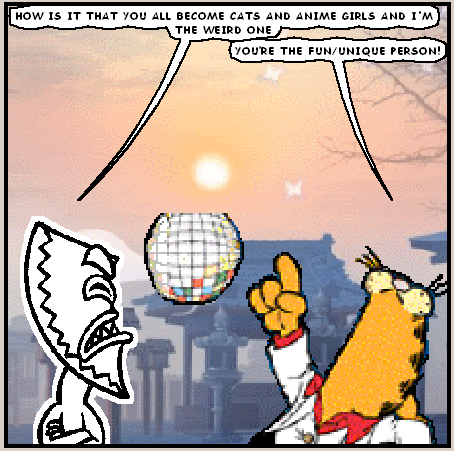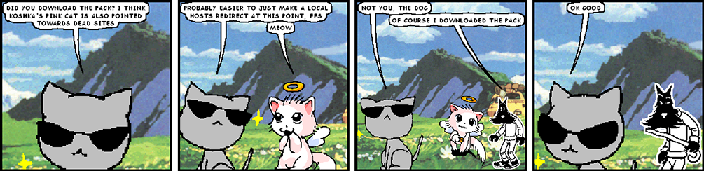 It should go without saying but, do not take anything in these screenshots too seriously. Nothing on the Internet is serious business for one. And for two, as is plain to see from most of the dialogue here, it can be very difficult to not be comedic or audacious when you're communicating as a cartoon cat or other silly character in ALL CAPS.