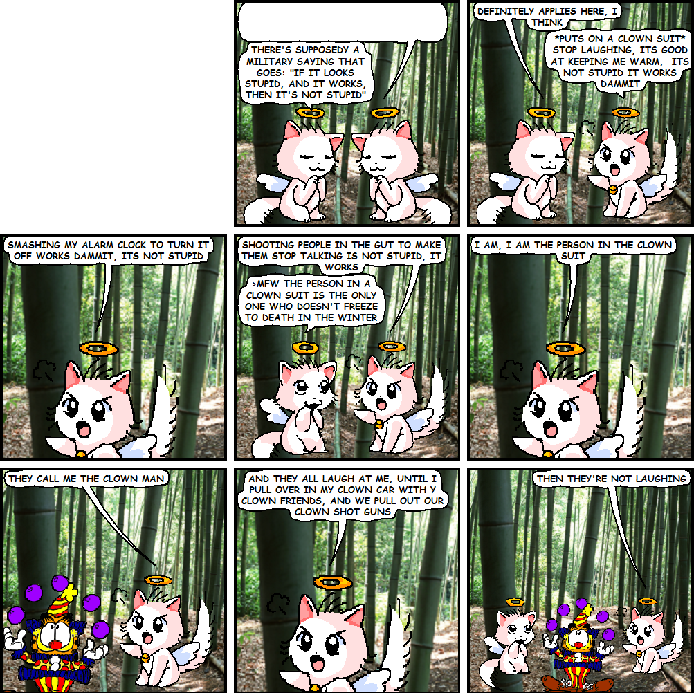 Although 1 MB may seem quite trifling by modern standards, it is not nearly as crippling as it may seem, as everything is ultimately dependent on how well-compressed the art files used for the avatar are. The most impressive example I am aware of, in terms of just what one can get away with, is Botender's Garfield avatar. Despite clocking in at a piddling 502 kilobytes, this ingeniously made character contains no less than 68 mildly pixelated poses.
