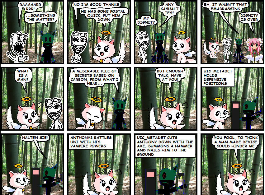- Hidden poses - It's not intuitive at all, especially if you tend to freeze your place on the emotion/pose wheel as previously mentioned, but many, if not most Comic Chat avatars have poses that you will never be able to select via using the wheel. These phantom poses appear to come in two varieties, both of which require unfreezing the emotion wheel to utilise.