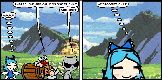 Microsoft Comic Chat (later renamed to Microsoft Chat) is an sublime IRC client developed by Microsoft during their glorious golden age back in 1996, which provides an equally humourous and useful way of chatting that no other program to date has ever replicated.